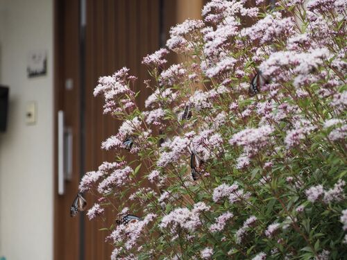 お天気は晴れ時々曇り。 今日も極早生みかんの収穫です。 お兄さんが手伝いに来てくれるので助かっています。 昼前に帰宅すると、庭のフジバカマにアサギマダラが2頭飛来していました。 嬉しい〜。 去年の冬頃、フジバカマが猪に食い荒らされてしまって、庭…